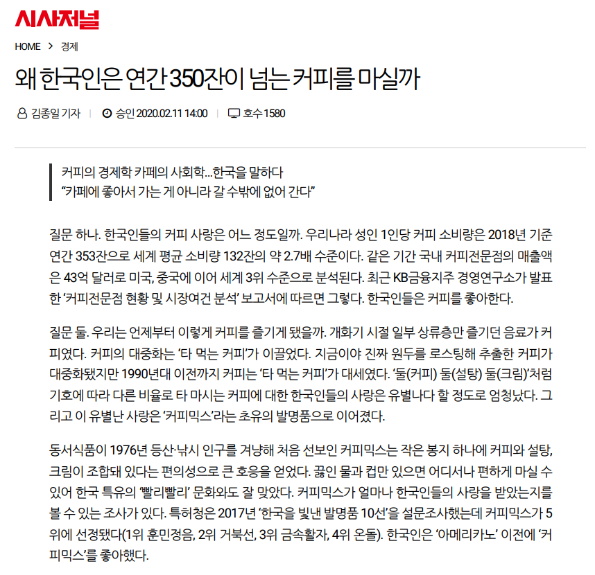 Source: Why do Koreans drink over 350 cups of coffee a year - Sisa Journal (sisajournal.com)
